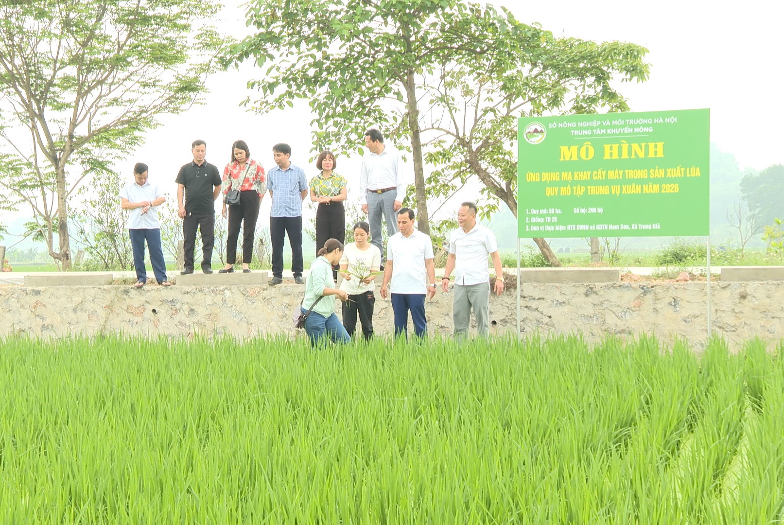 Qua kiểm tra thực tế tại HTX Nông nghiệp Thanh Mai - xã Đa Phúc; HTX Dịch vụ nông nghiệp và Kinh doanh tổng hợp Nam Sơn - xã Trung Giã cho thấy: Các HTX đã đối ứng đủ 50% lượng giống lúa, phân bón trước khi Trung tâm Khuyến nông Hà Nội bàn giao 50% lượng giống lúa và phân bón hỗ trợ theo hợp đồng đã ký kết giữa các bên. Tại mỗi HTX, Trung tâm Khuyến nông Hà Nội cũng đã cấp 01 bảng biển mô hình và tổ chức 01 lớp tập huấn kỹ thuật Ứng dụng mạ khay cấy máy trong sản xuất lúa cho 100 người.