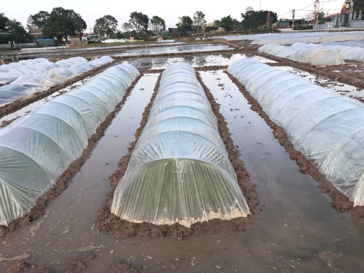 Không che nilon dạng “bệt” như trải chiếu trên bề mặt luống mạ, gặp rét đậm, rét hại đọng sương trên bề mặt nilon bị trũng, nước sương giá lạnh sẽ làm mạ bị héo chết từng chòm, mạ sinh trưởng yếu.