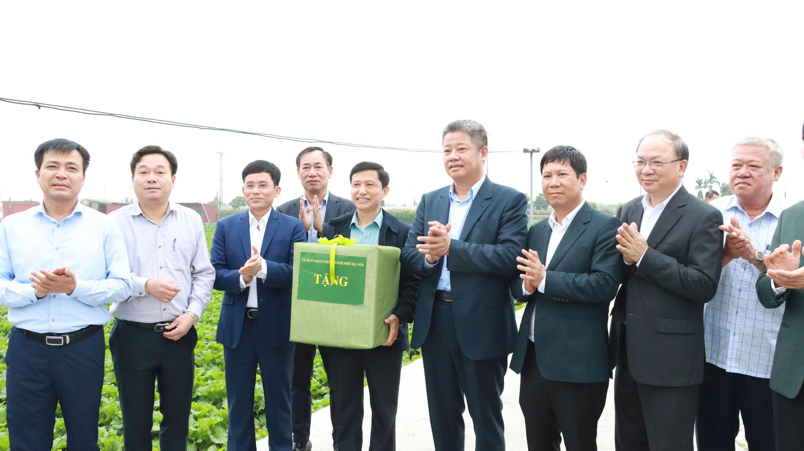 Lãnh đạo thành phố Hà Nội tặng quà cho đại diện Hợp tác xã Văn Đức