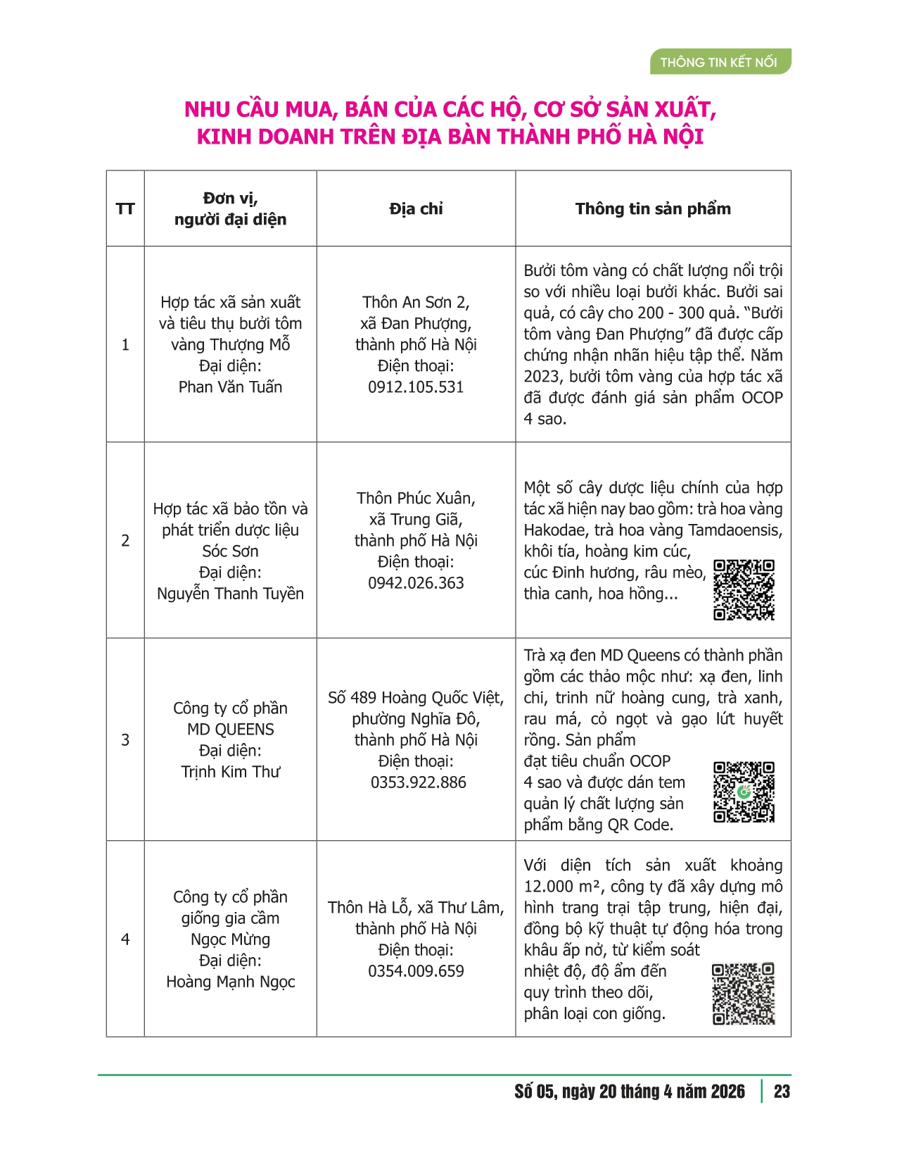 Nhu cầu mua, bán của các hộ, cơ sở SX, kinh doanh trên địa bàn TP Hà Nội số 05 năm 2026